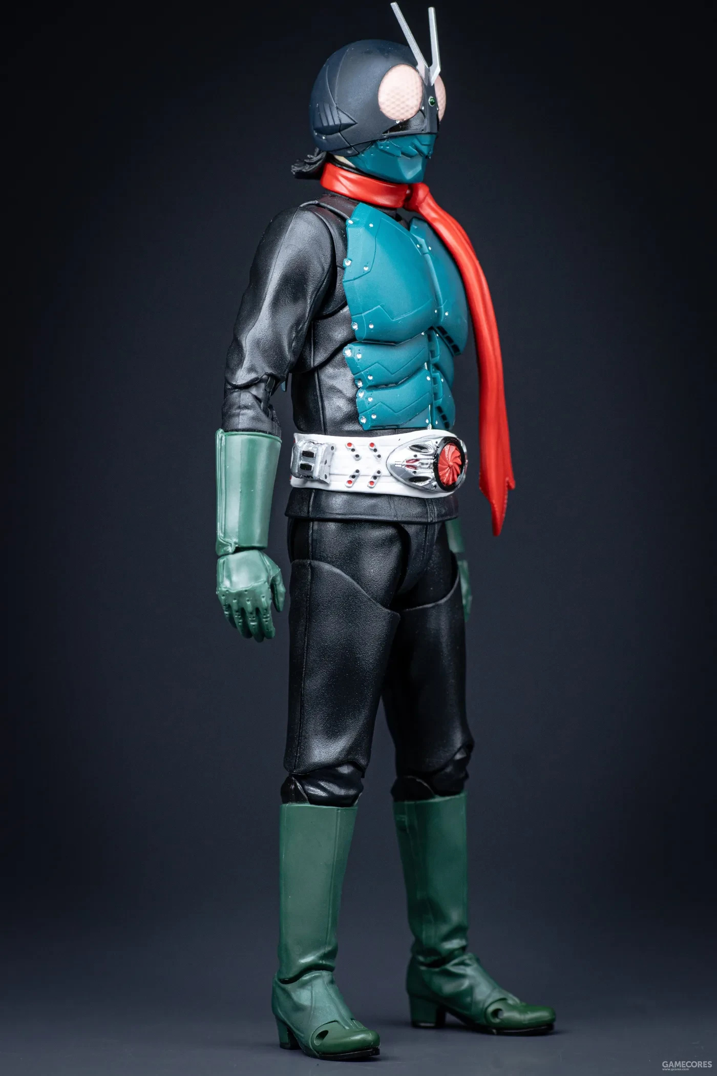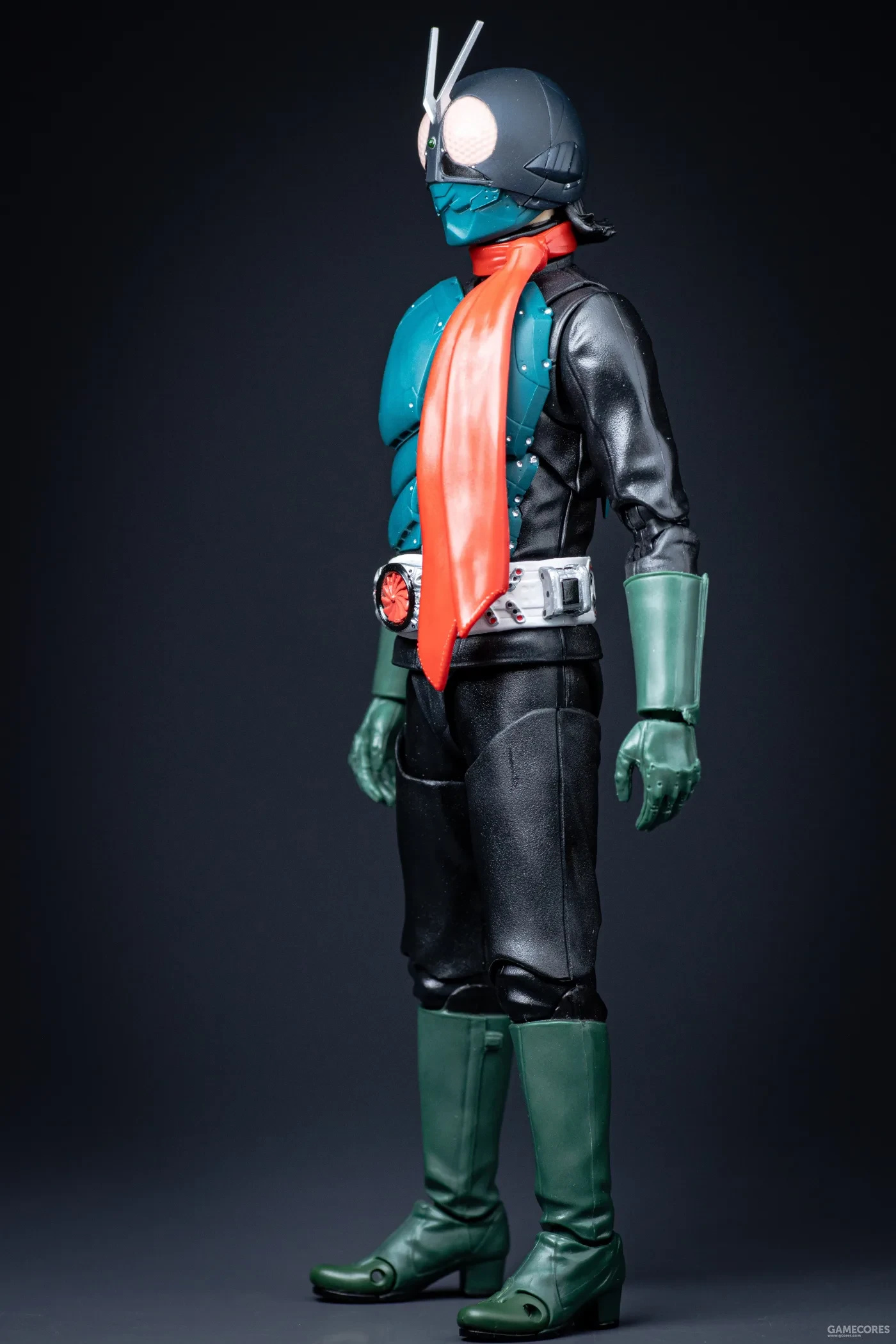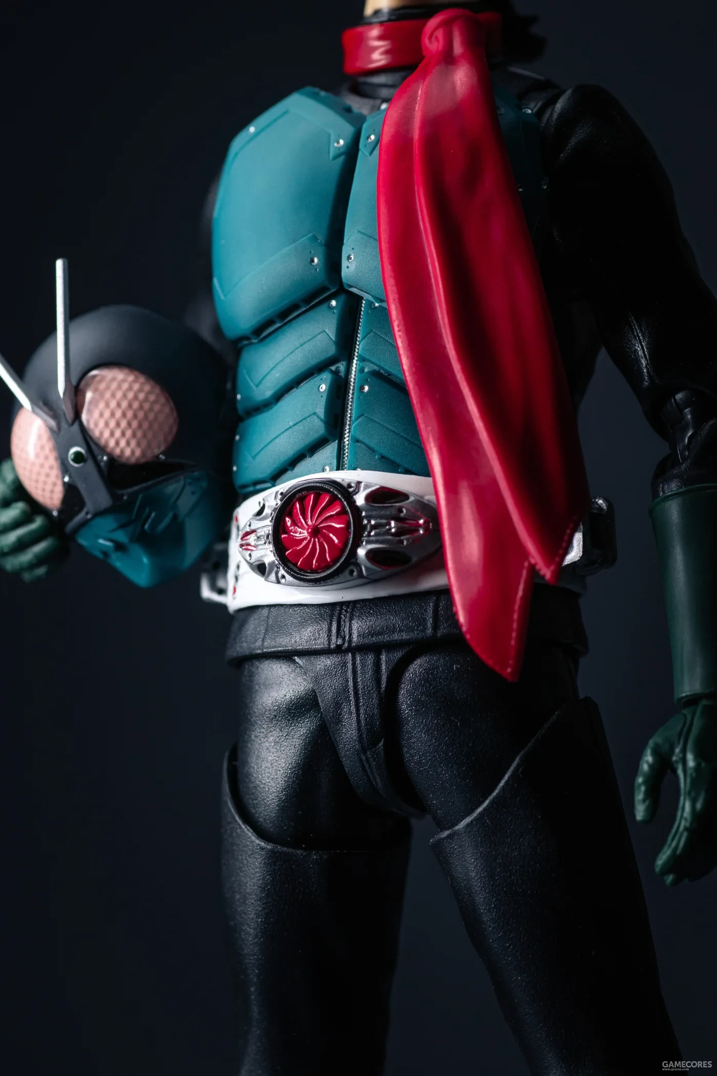 + 造型極致,因爲追求劇中還原,所以SHF的開發團隊認真研究皮套戲服設計。細節可謂刻畫到位,從頭盔和盔甲上的鉚釘、刻線和胸甲排氣口,到腰帶的精密塗裝都表現的毫不馬虎。商品的全身底衣部分雖然是黑色成型色加消光,卻在表面做出來了皮衣紋理質感,而且衣服褶皺造型雕刻得真實耐看。確實體現出了萬代收藏部對於本商品的重視與技術高度。