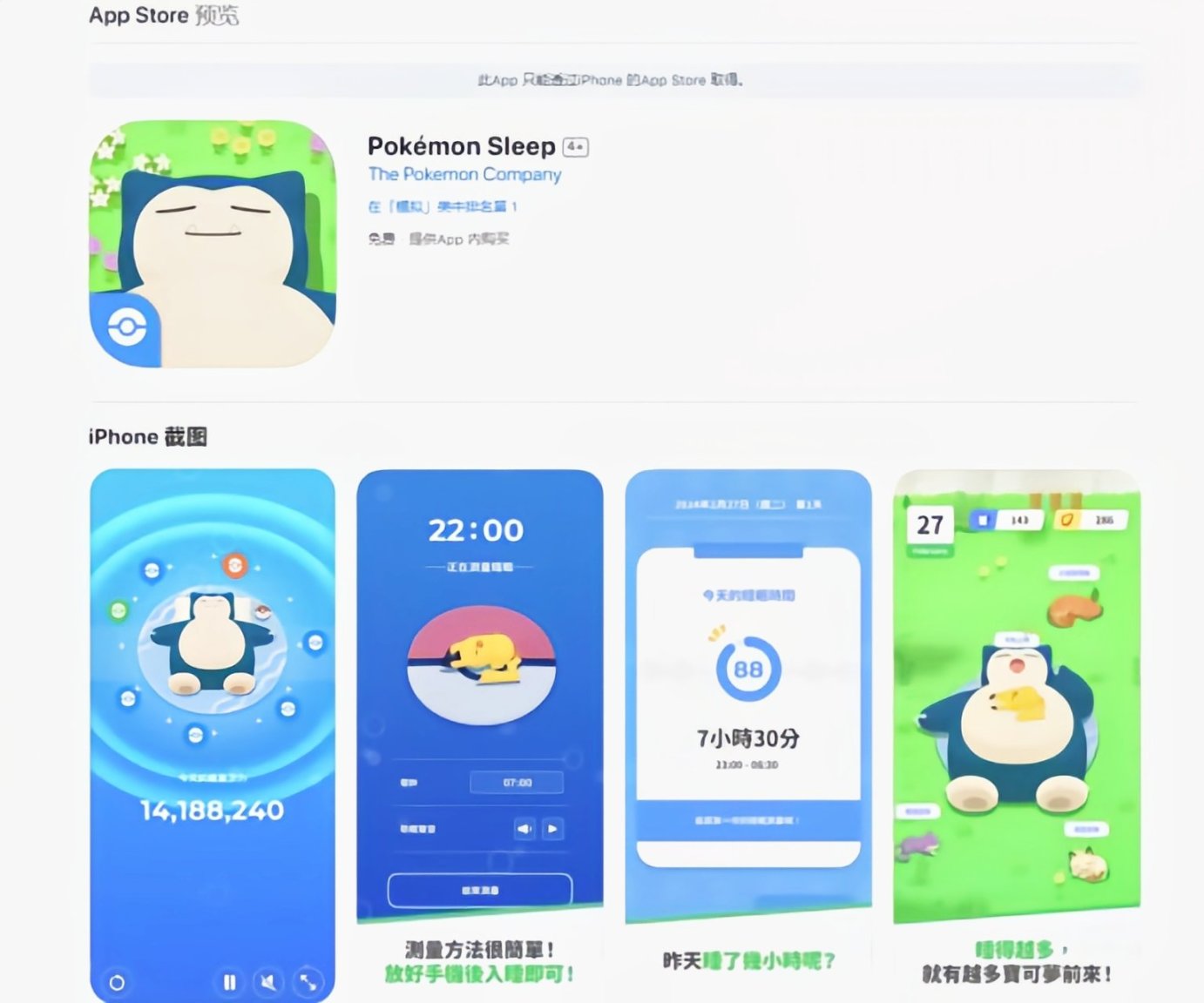宝可梦公司上周在 Google Play 上架了《Pokémon Sleep》手游并开启预注册。随着正式版的推出,这款游戏已同步上架苹果 App Store,而且刚刚更新了 1.0.1 版本。