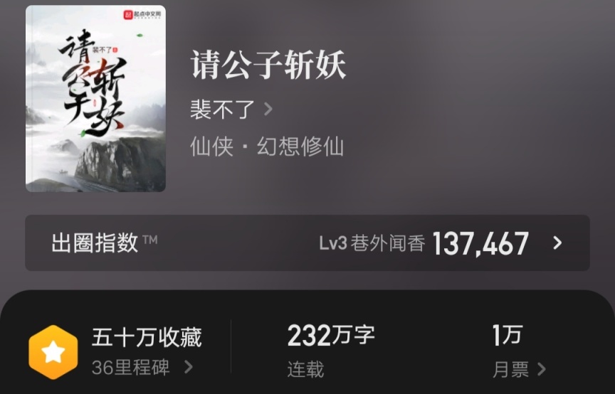 代表作:《请公子斩妖》、《我不可能是剑神》