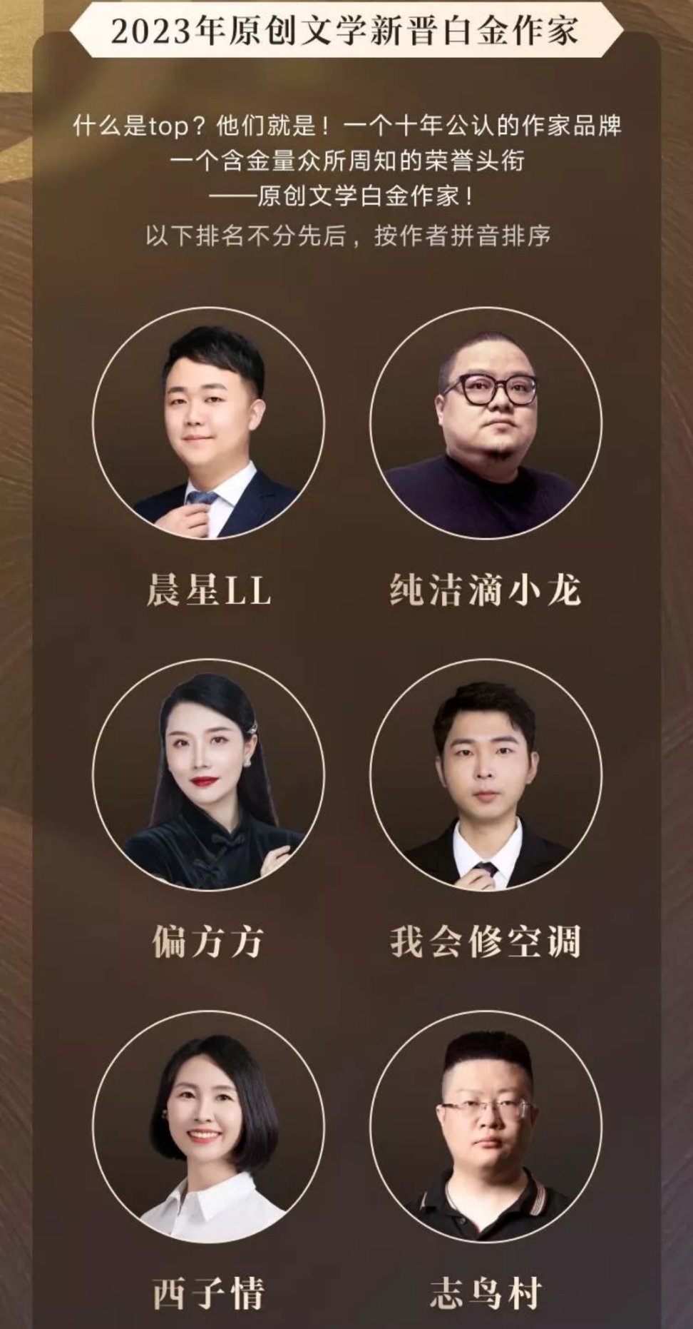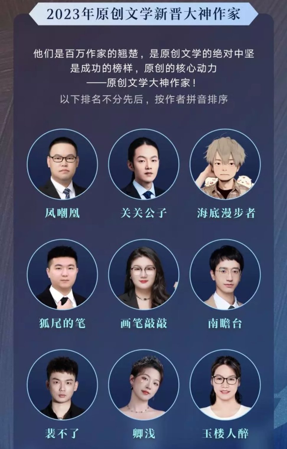 7月19日,阅文集团终于发布了2023年的新晋白金和大神作家名单。