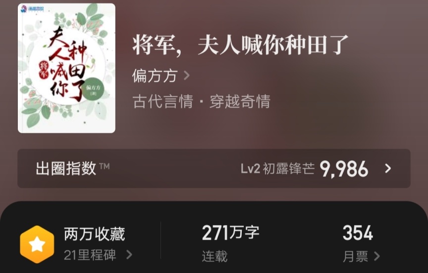 阅文集团白金作家,古言爽文代表作家,擅长种田宅斗题材,多部畅销作品,常年位于各类榜单前列。