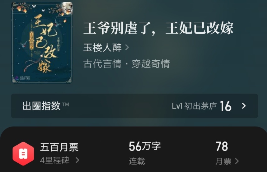 代表作:《王爷别虐了,王妃已改嫁》、《娘娘是个娇气包,得宠着!》、《贵妃她又轰动后宫了》、《弃妃,你又被翻牌了!》