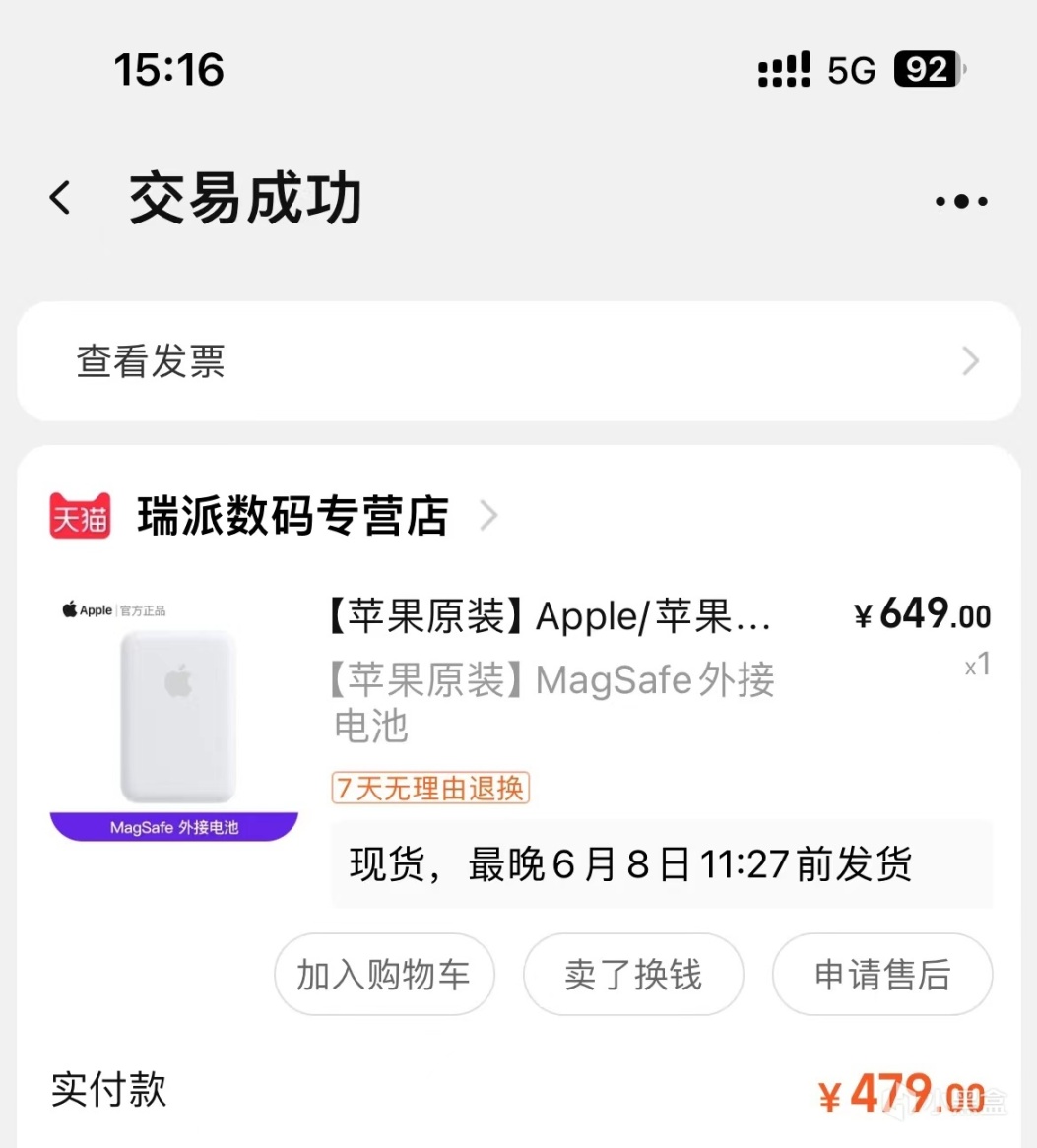Magsafe外接電池跟AirPods一樣,在小黃魚上簡直是假貨重災區。可以說十個賣外接電池的九個全是假的,我第一次買就圖便宜,找了一個定位江蘇徐州的賣家,結果發貨的時候我發現是從廣州發貨。我立馬感覺到了不對勁,就沒有選擇收貨也沒去拿快遞,直接要求拒收,在扯皮了一段時間之後,小黃魚法庭判我贏,商家同意了退貨+全額退款。Magsafe外接電池假貨多的原因是這東西太好仿造了,本來沒有太多的技術含量。這東西是我見過的少數存在第三方代理防僞標籤的蘋果產品,可見Magsafe外接電池的假貨多麼氾濫。