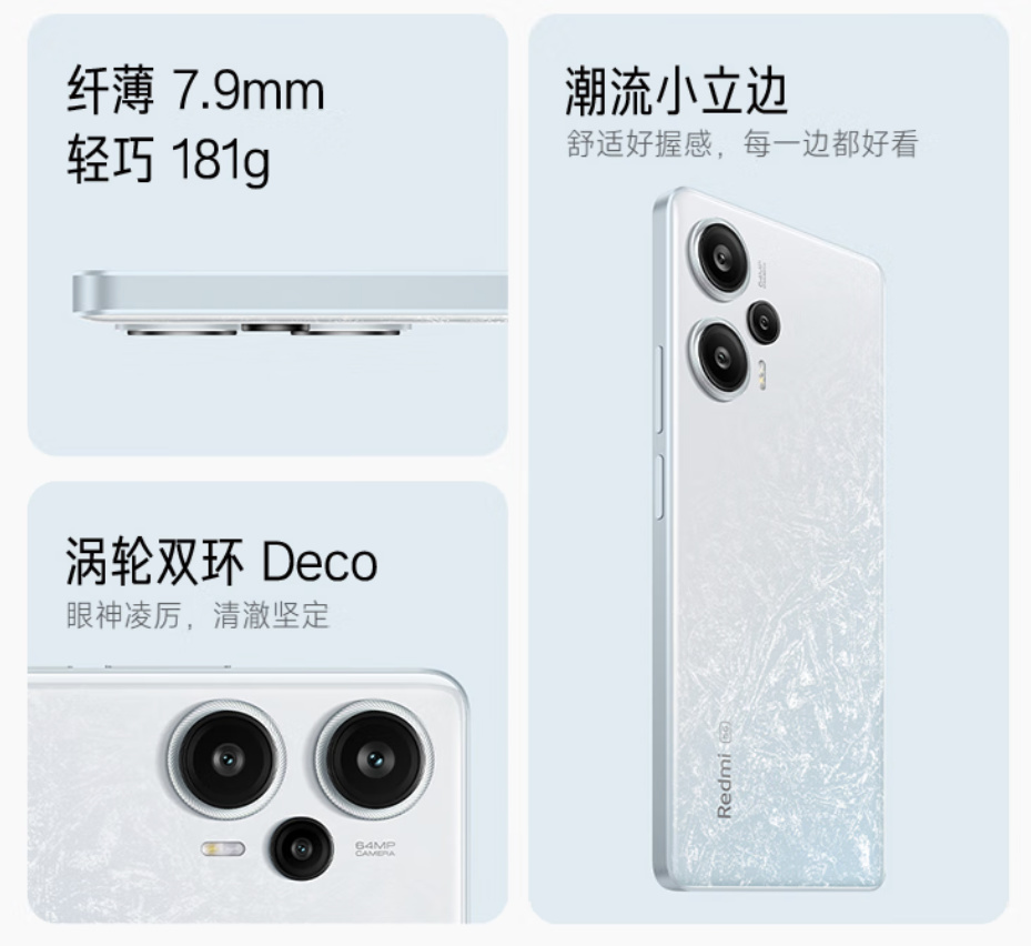 配置:第二代驍龍7+/1080P屏幕120Hz高刷/6400W三攝/5000mA電池/67W快充