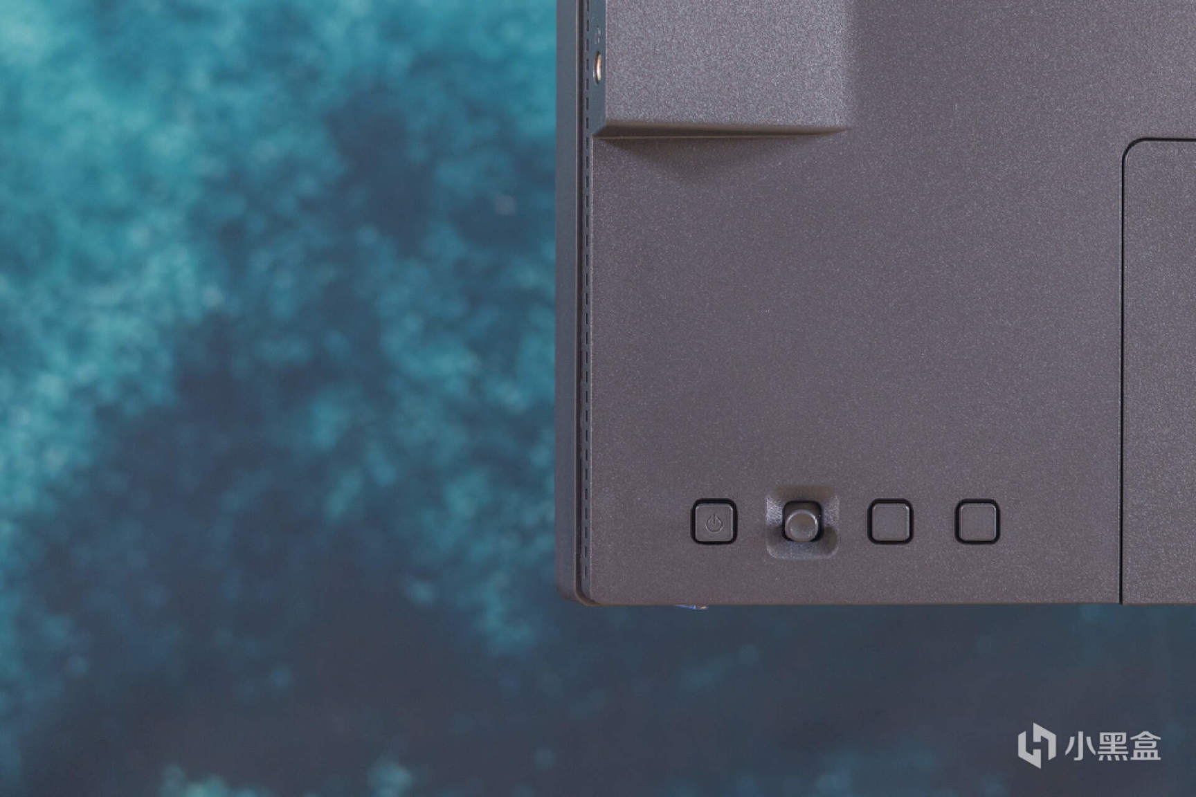 機器的操控按鍵設計在右側背部,採用了獨立電源鍵+五向OSD搖桿+兩顆快捷按鍵的搭配。兩顆快捷鍵默認分別爲切換色彩模式和切換輸入信號,當然這兩顆快捷鍵可以進入OSD菜單進行自定義設置,使之更符合玩家自己的使用需求。