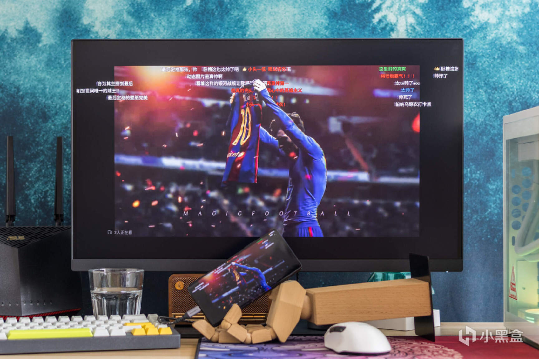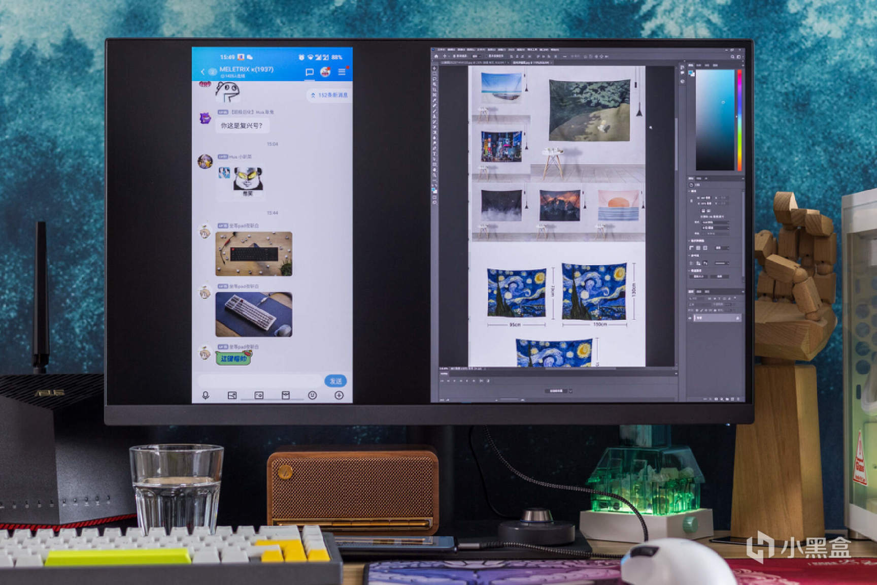 在實現了一套鍵鼠控制兩臺設備的基礎上,明基PD2705U還有着不錯的雙屏顯示體驗——PIP(雙屏並顯)、PBP(畫中畫),顧名思義就是支持以左右分屏或者畫中畫的形式同時顯示兩臺主機的畫面。在不方便安裝微信、QQ等通訊軟件的場景下,利用USB-C接口接入手機投屏顯示,可以做到一邊工作一邊關注聊天消息。雙屏顯示無論是工作還是娛樂,都有不錯的使用延伸。