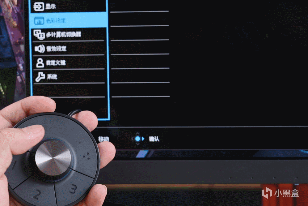 作爲一款專業向的顯示器,PD2705U最大的亮點就是配備了Hotkey Puck G2控制器小熱盤。OSD小熱盤採用了旋鈕加按鍵的設計,一般放置在顯示器底座上,伸手就能觸碰到的位置,從而快速對顯示器的顯示亮度、色彩模式進行調整。