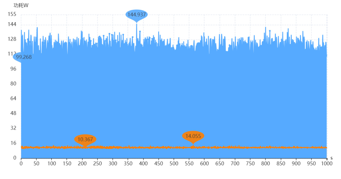 实测待机功耗10W左右,峰值功耗144W,平均满载功耗110W左右。