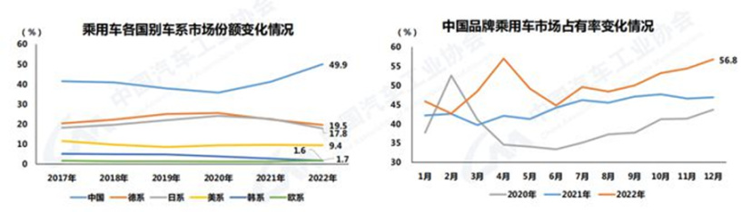 全產業鏈帶來的優勢在市場上展現得淋漓盡致,不說別的,就2022年國內自主品牌的市場佔有率就上到了49.9%,並且2023年的第一季度還暴增了,比亞迪的各類車型在裏面起到了相當大的作用。