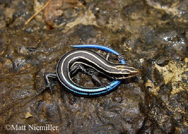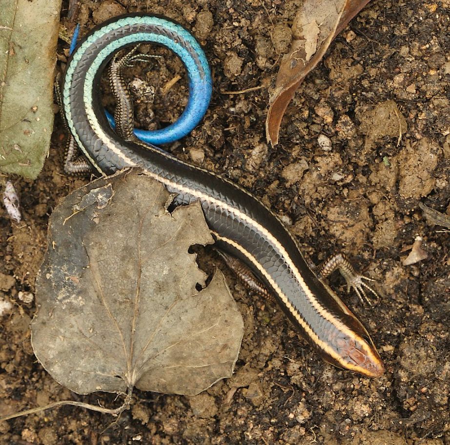 然而,四线石龙子在性成熟后,也仍保留着蓝色尾巴。