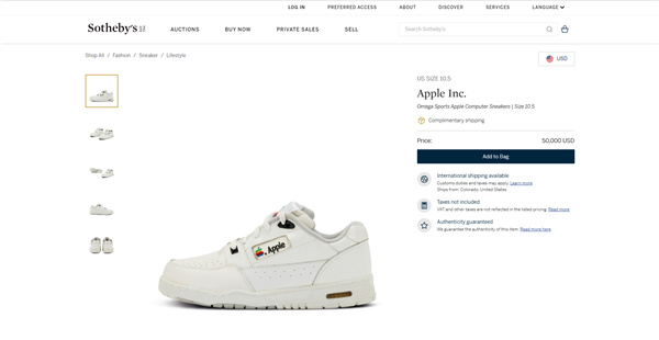 近日,一双相当罕见的Apple Computer男式运动鞋出现在苏富比拍卖行官网,其最低售价达到了5万美元(约合人民币36.1万元)。