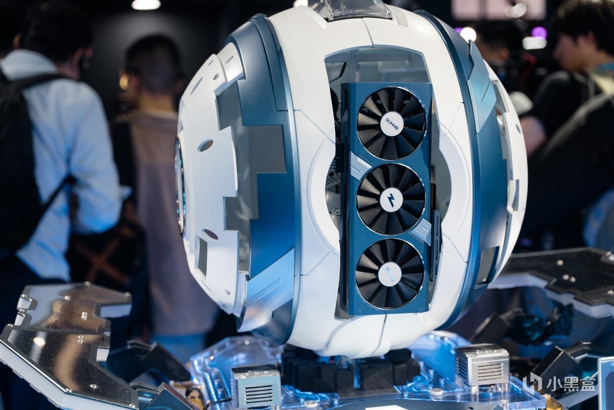例如位於展臺重要的球形MOD PC將所有硬件包裹,唯獨露出顯卡部分,以強調其帶來的戰鬥力。