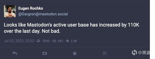 比如在推特瀏覽限制的第二天,開源社區長毛象Mastdon(類比國內知乎豆瓣)就激增了十一萬新用戶;