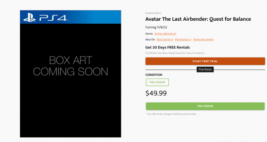 根據 Gematsu 在推特上報道,熱門尼克國際兒童頻道動畫《降世神通:最後的氣宗》改編遊戲《Quest for Balance》目前已在線上零售商 GameFly 商店上架。官方暫未正式公佈這款遊戲,但根據商品列表顯示,遊戲將登陸 PS4、PS5、Xbox 和 Switch 主機。