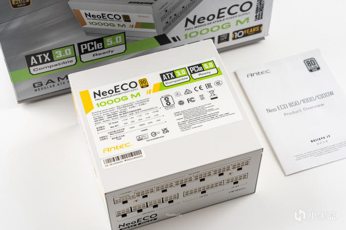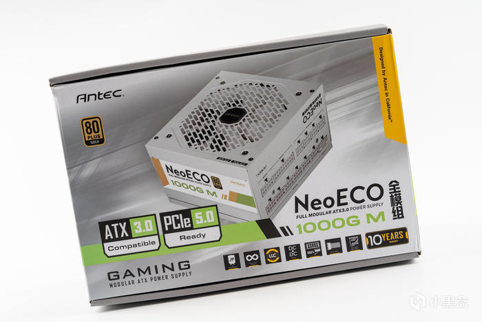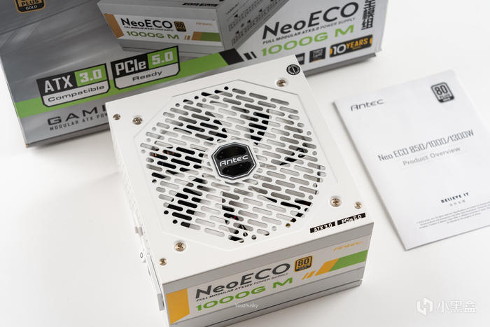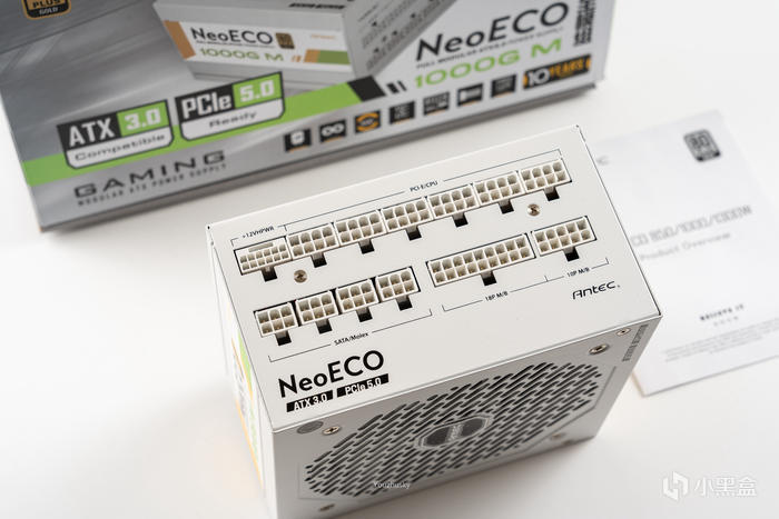 電源採用了安鈦克新款支持ATX3.0和原生PCIe5.0的NeoECO 1000G M白色款電源,其轉換效率高達92.71%,採用了全日系電解電容、全橋LLC諧振架構,支持智能溫控啓停和使用了140mm小體積設計,一款白色高顏值的ATX3.0電源,且更支持10年換新的質保