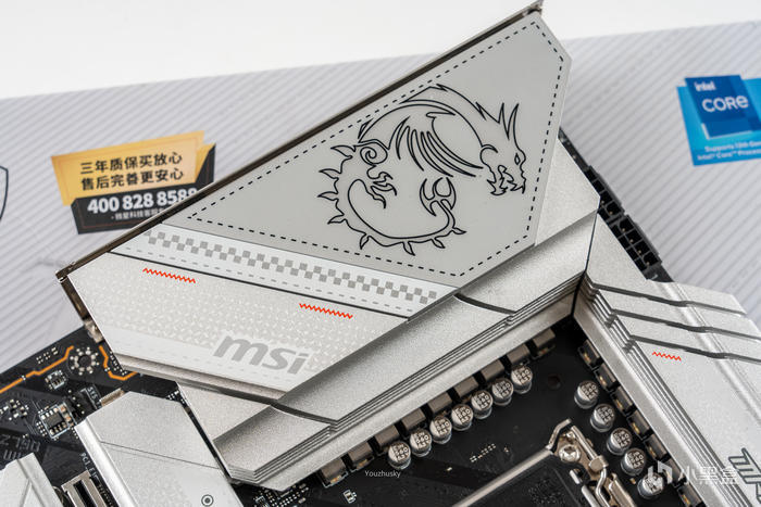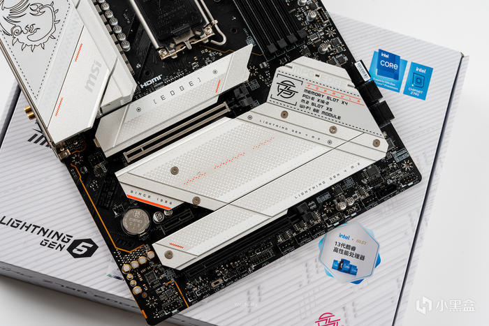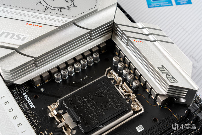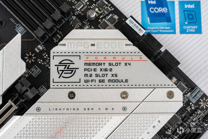 芯片組散熱片上的MPG EDGE 標和標註了主板的一些參數配置