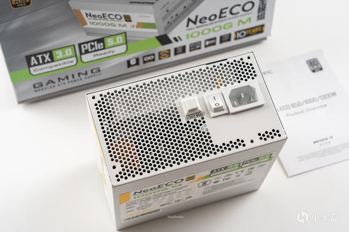 電源的側面主要標註了幸好NeoECO 1000G M和 80PLUS金牌認證