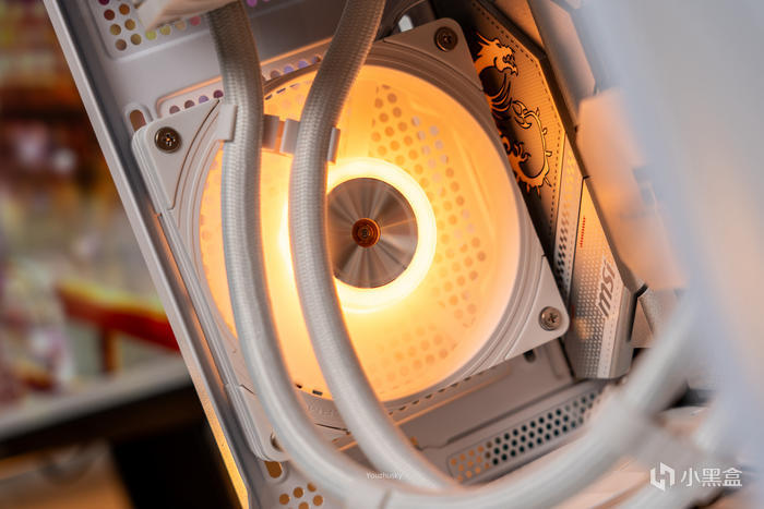 3個11CM超大尺寸的仿生盾鱗2.0風扇採用雙滾珠軸承和加厚設計,可大幅提升散熱效率