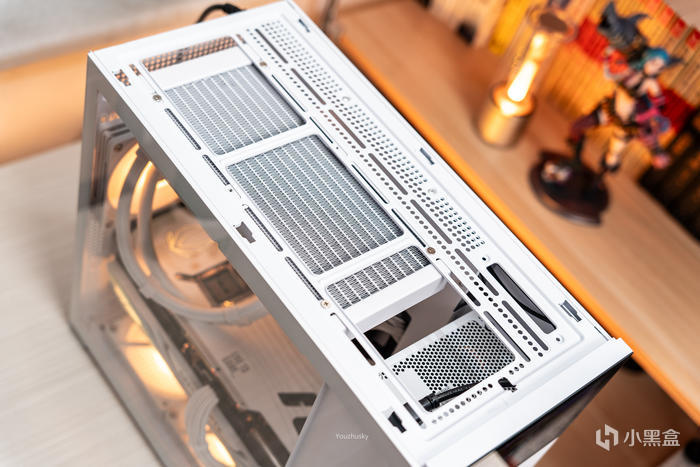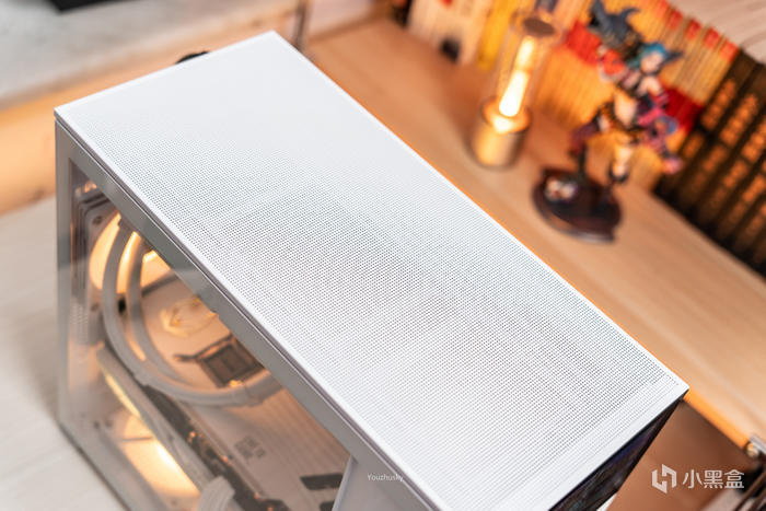 D41松果的頂部也是MESH網面,正好可以爲頂部冷排出風,以及整機垂直風道的出風