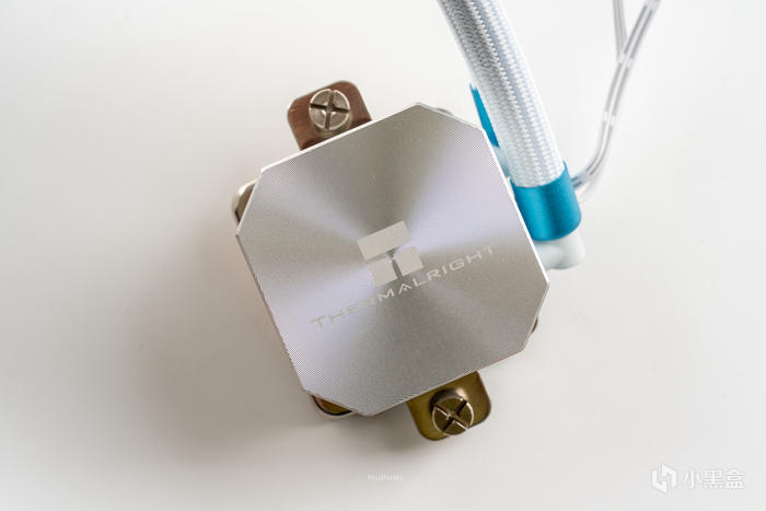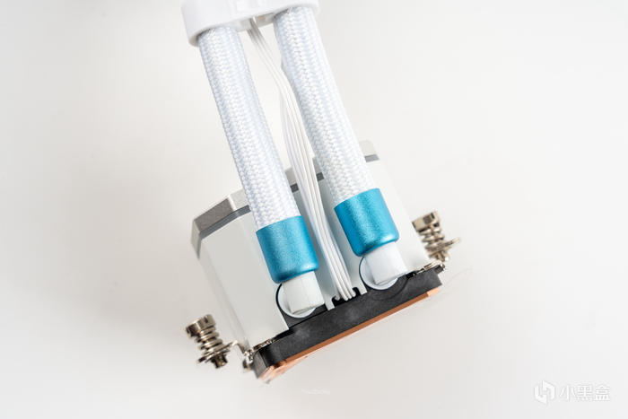 冷頭底部是非常大的正方形銅底,可兼顧目前的13代與zen4多種CPU的適配,而冷頭的固定設計也有點參照風冷安裝的兩頭壓力式,安裝與風冷一樣簡便