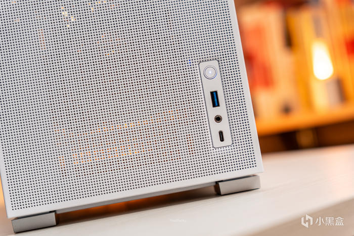 前面板右下角的帶燈開機鍵、USB3.0、音頻輸入輸出一體插口、Type-C口