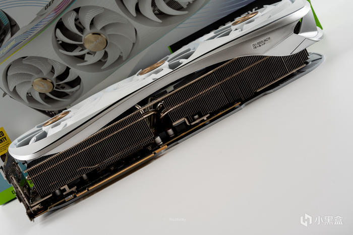 顯卡尾端也是設計了弧線造型,Ice Storm 3.0散熱系統採用9根冰脈複合熱管和VC均熱板設計,尾部依然能看到多根熱管