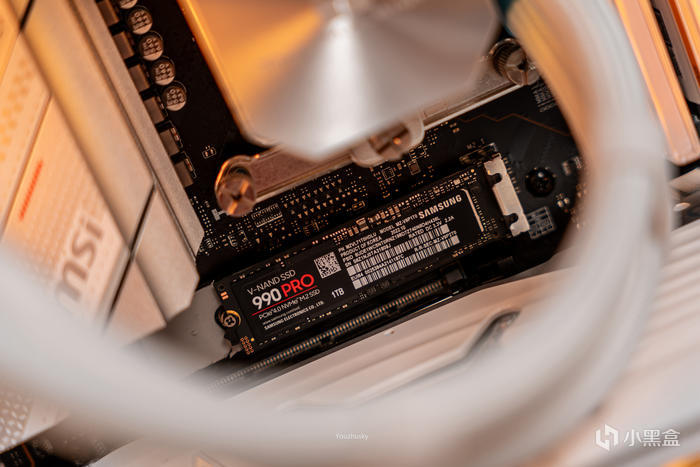 Z790刀鋒主板上第一條M.2配置的三星990PRO 1TB固態硬盤,將來容量不夠了也沒事,因爲微星Z790刀鋒總共有5個M.2位