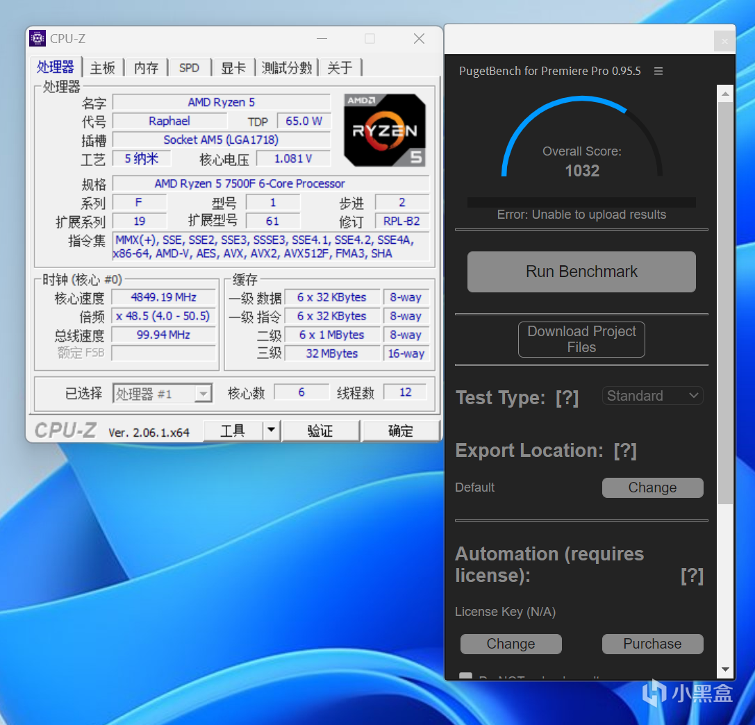 PugetBench for Premiere Pro基准,锐龙5 7500F得分1032