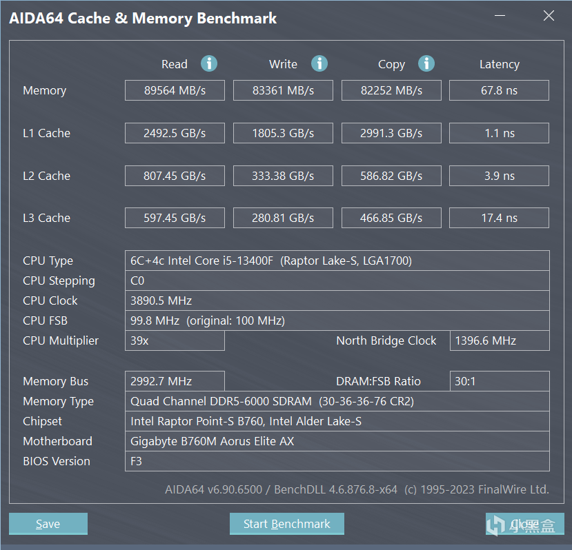 AIDA64内存和缓存测试,酷睿i5 13400F表现