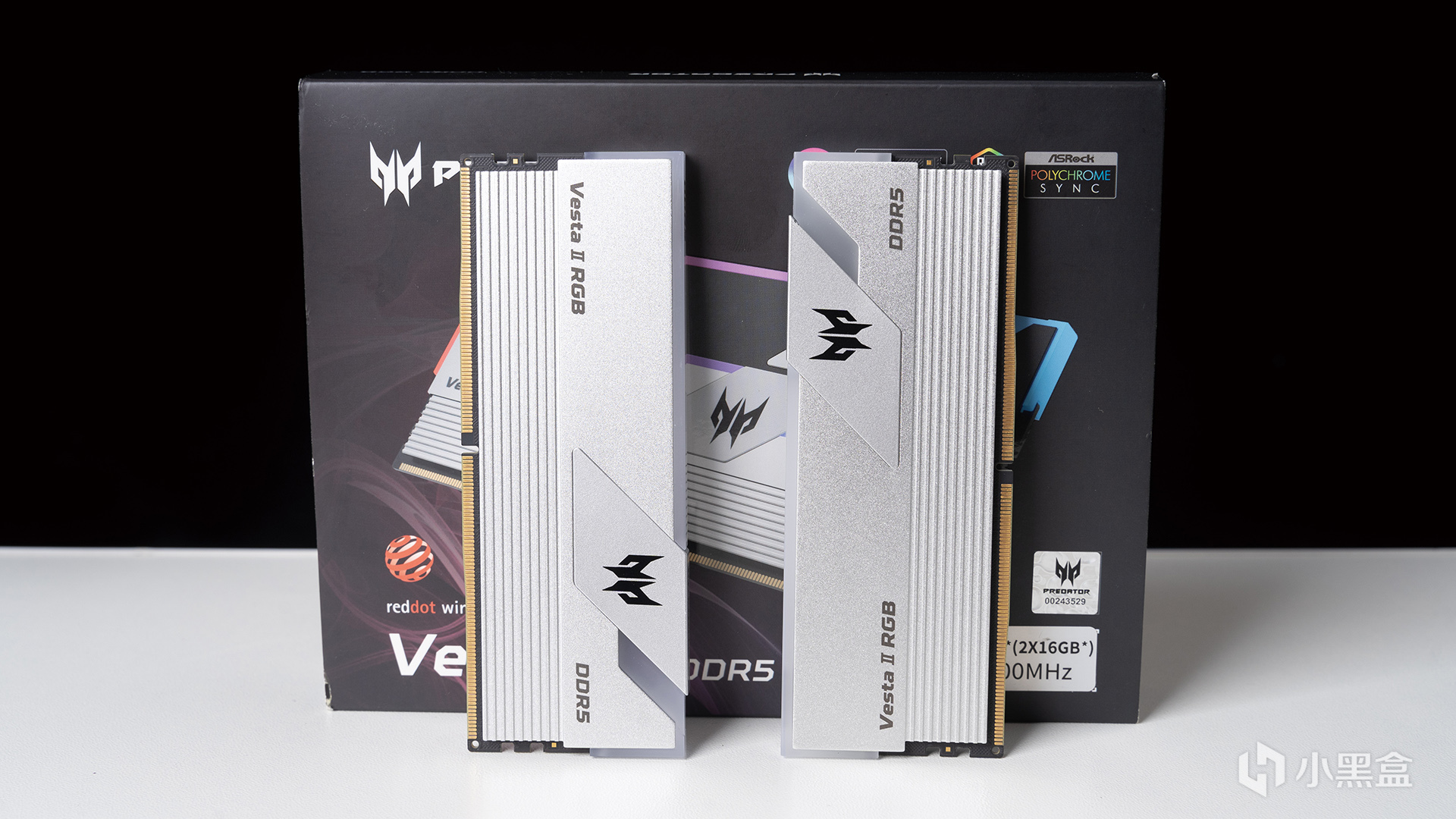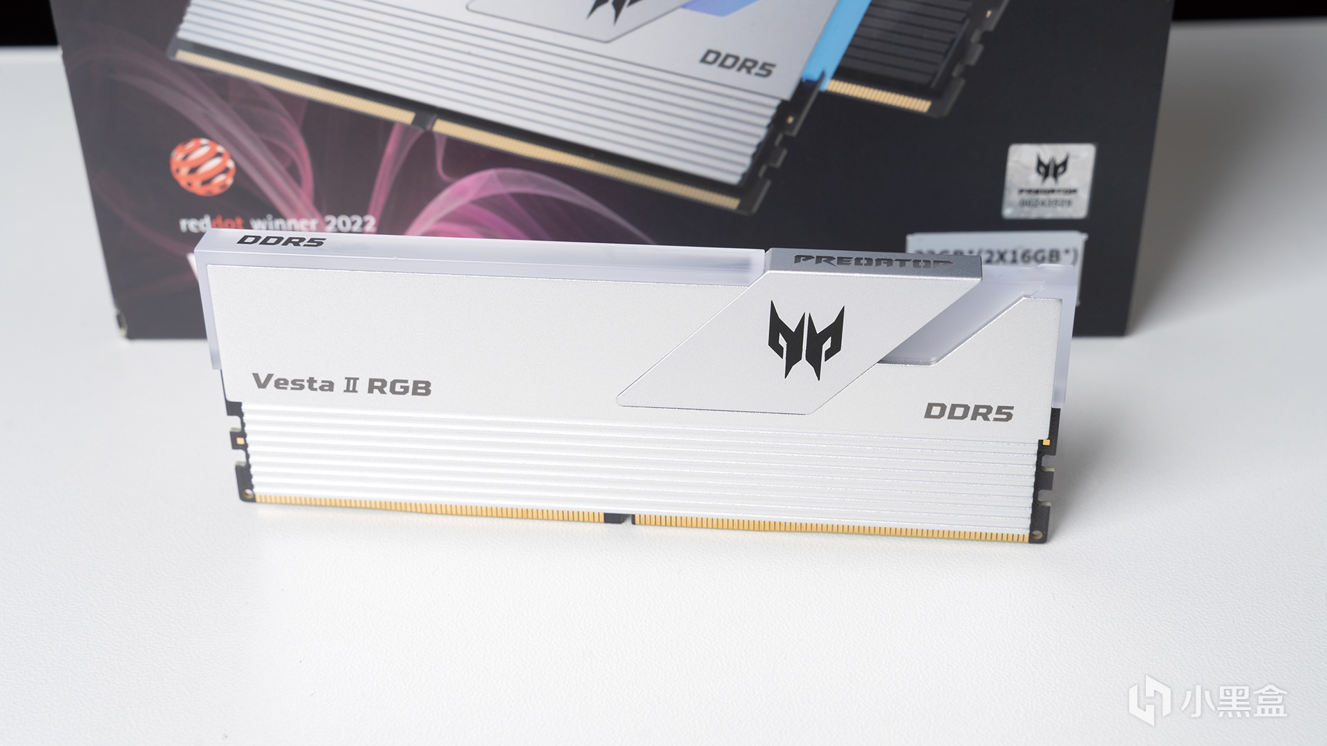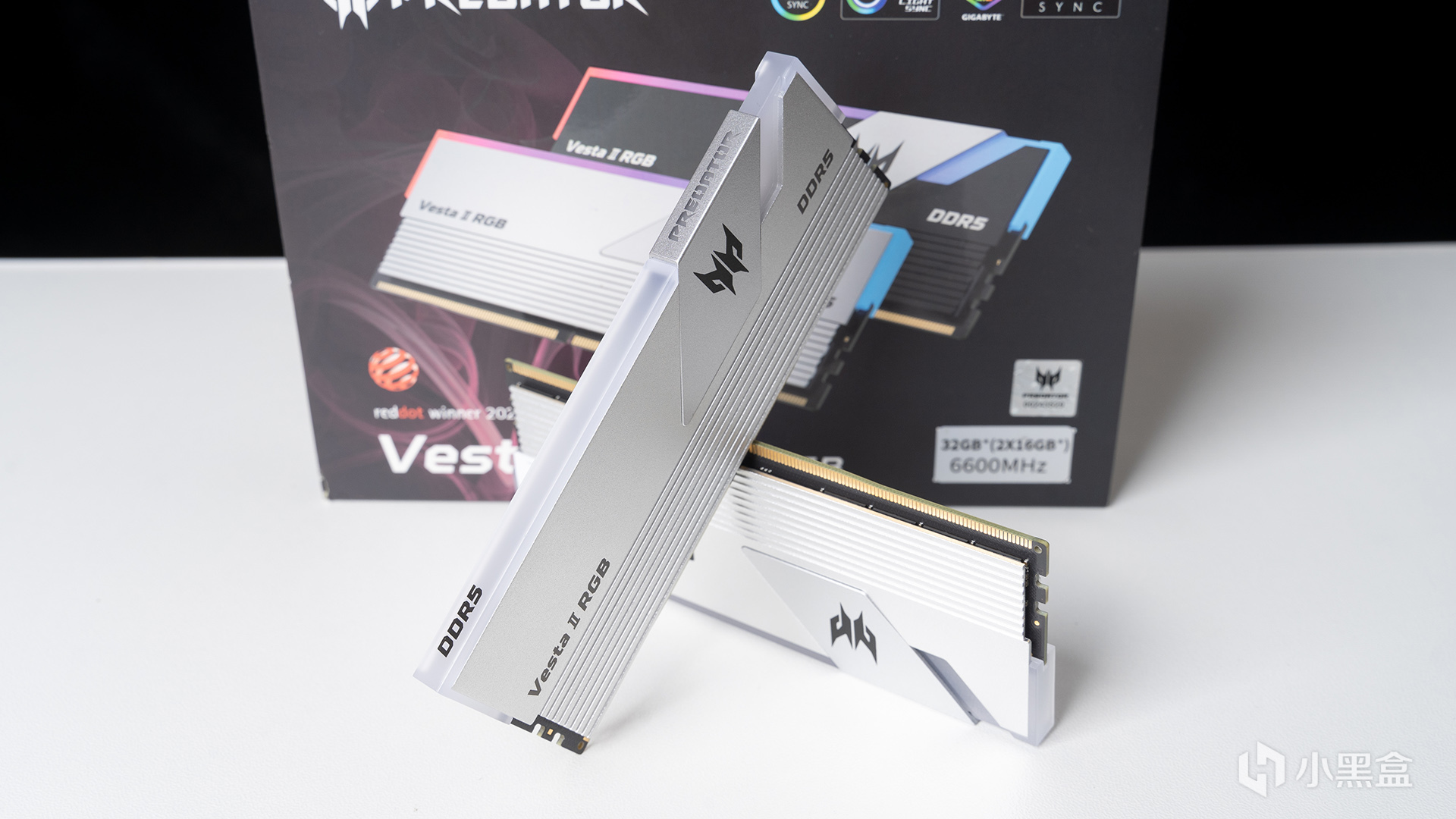 内存就是宏碁掠夺者Vesta II炫光星舰DDR5 6600CL34 16GBX2银色套装,采用铝合金材质马甲,高度达到50mm属于典型的高梳子类型,拥有6000、6600和6800MHz等多种频率选择,也有银色和黑色两种版本可选。