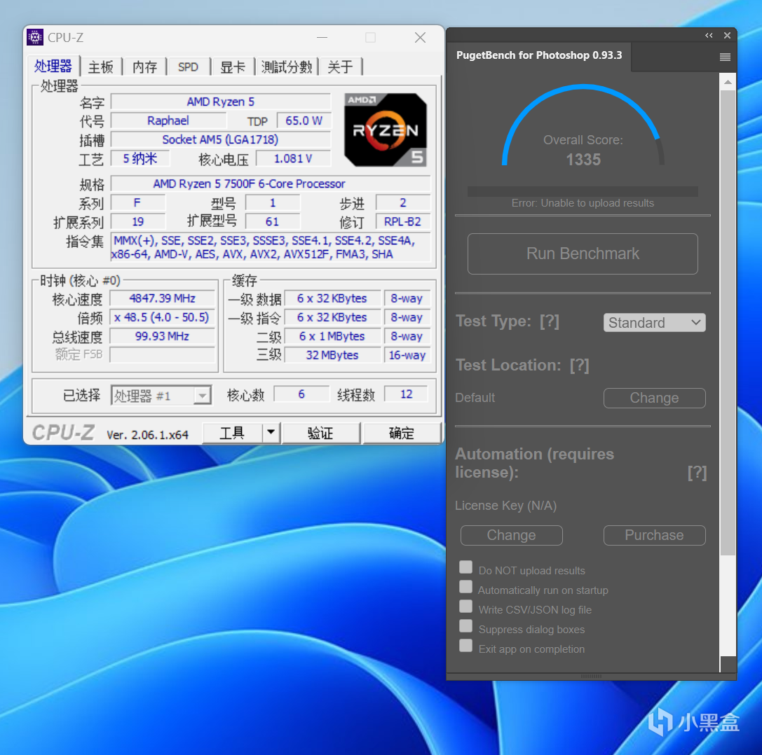 PugetBench for Photoshop基准,锐龙5 7500F得分1335