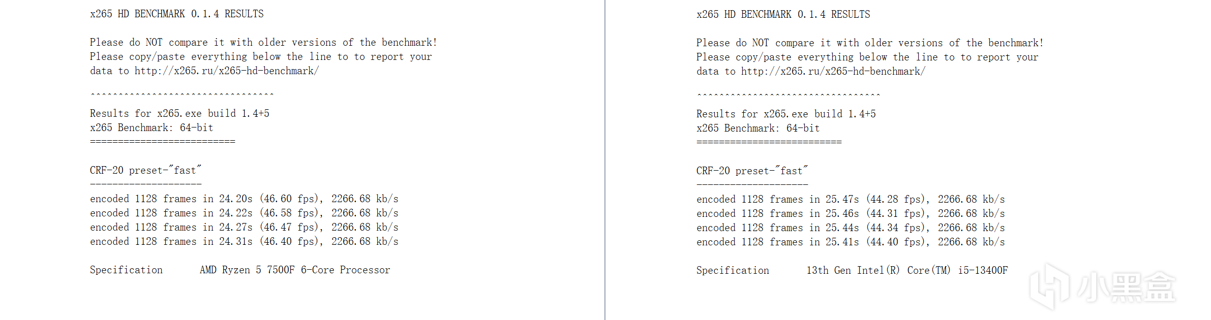 X265编码方面,在主流1080P标准锐龙5 7500F勉强略胜一秒钟,优势是几乎忽略不计的,恰恰也反映了大核效率依然很高。