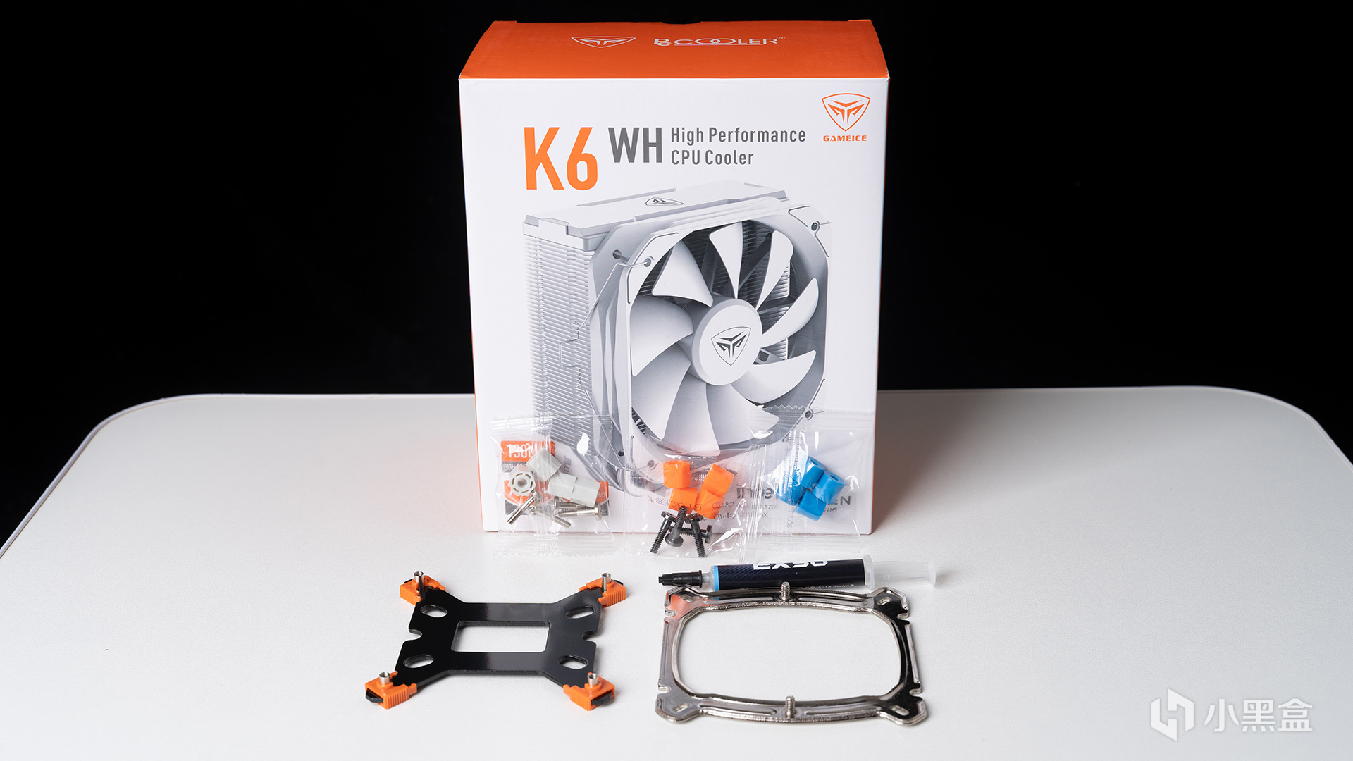K6超越者采用全金属中心压力扣具,支持最新LGA 1700和AM5平台,上扣具AMD和英特尔是公用的切换平台很方便,配件中还提供了一管EX90导热硅脂,导热系数高达14.8,非常良心。
