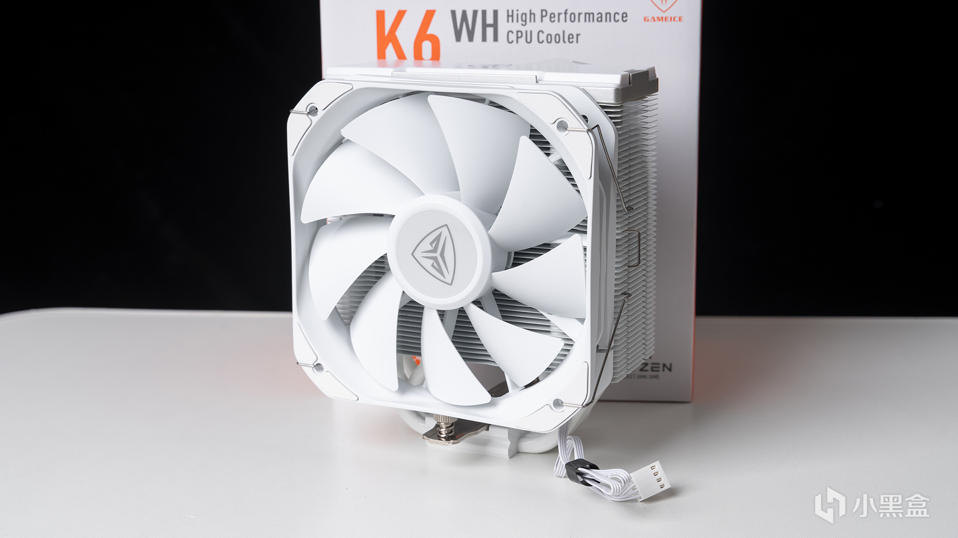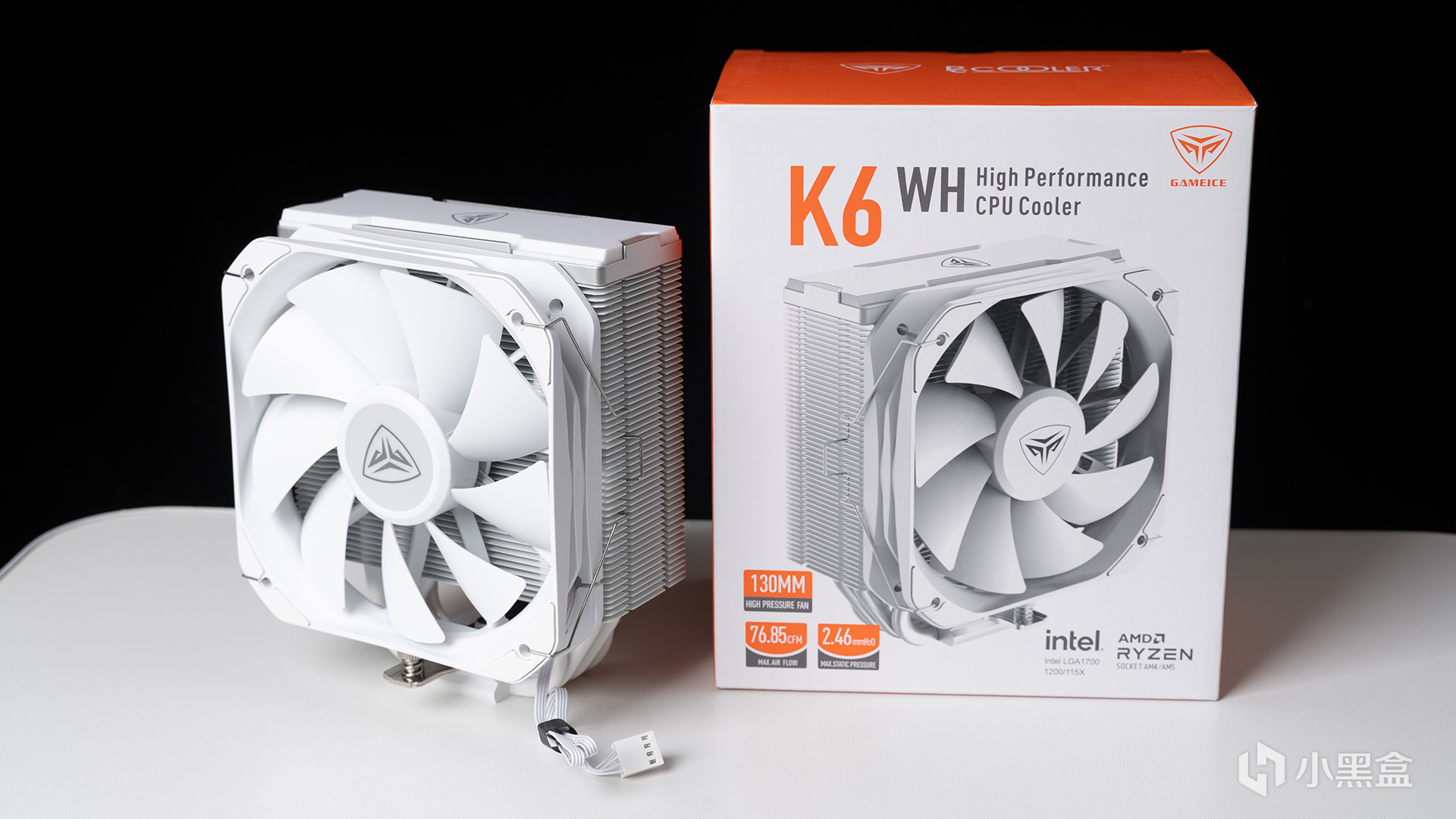 散热器就是超频三全新推出的K6超越者,分为黑和白两个版本,和之前的K系列一样,散热风扇采用比常规单塔风冷更大的130mm规格,能提供更好的风量和风压,散热器高度也可控制在156mm,兼容性良好。