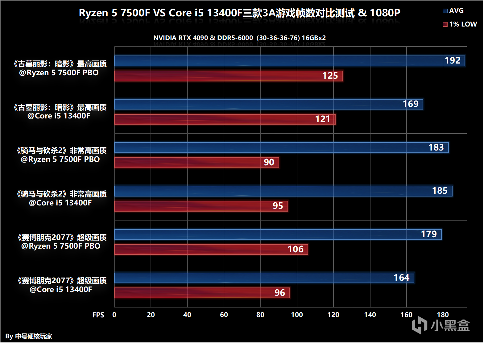 至于3A游戏一般锐龙5 7500F可以领先5%到10%左右,只有两款游戏落后于酷睿i5 13400F,但只有1%性能差距基本可以忽略不计了,这其实就是锐龙5 7500F大核+高频所带来的优势,内存延迟两者也没差别。