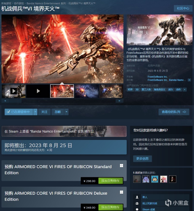 结合早前《装甲核心6》官方官宣的相关内容,此次新作组装系统更适合于当下大众玩家的需求,简化了较多更为复杂的组合,此次公布的PVP模式,相信喜欢该系列的新老玩家们非常期待。游戏将于8月25日正式推出,登陆PS5、PS4、XSX、Xbox One和PC平台
