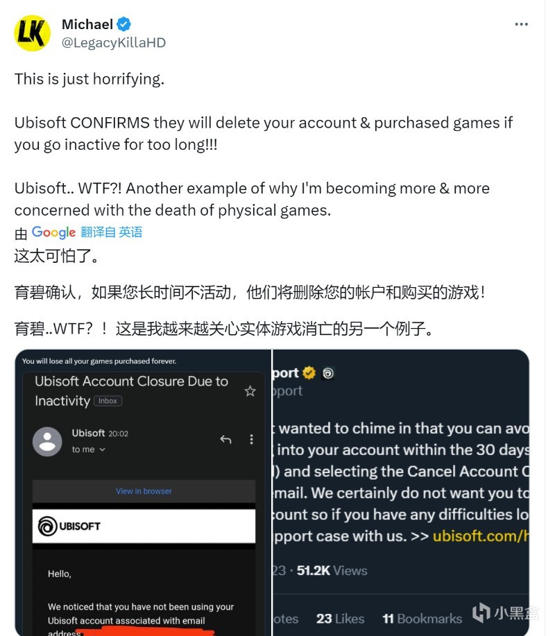 育碧账号长时间不登录,官方将直接删号!今日网上曝光了一段育碧账号关闭流程,如果玩家账号长期不登录,将会被清除历史记录,完全删除该账号相关信息,有关于这方面的信息得到了育碧官方客服的确认,这意味着长期不登录的玩家账号将被自动删除,包括游戏内购买记录,解锁内容,游戏游玩进度等一切内容