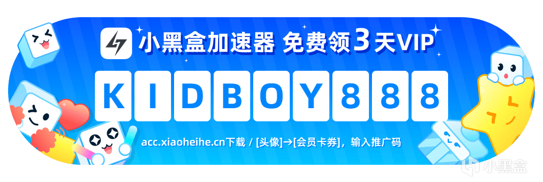 最后送大家一波福利,大家联机可以下载小黑盒加速器,在充值里面选择激活码激活,输入“KIDBOY888”可以免费领取3天加速器,然后加速即可!