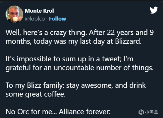 暴雪技术总监 Monte Krol 昨天宣布离开暴雪娱乐,此前他已在该工作室工作了近 23 年。
