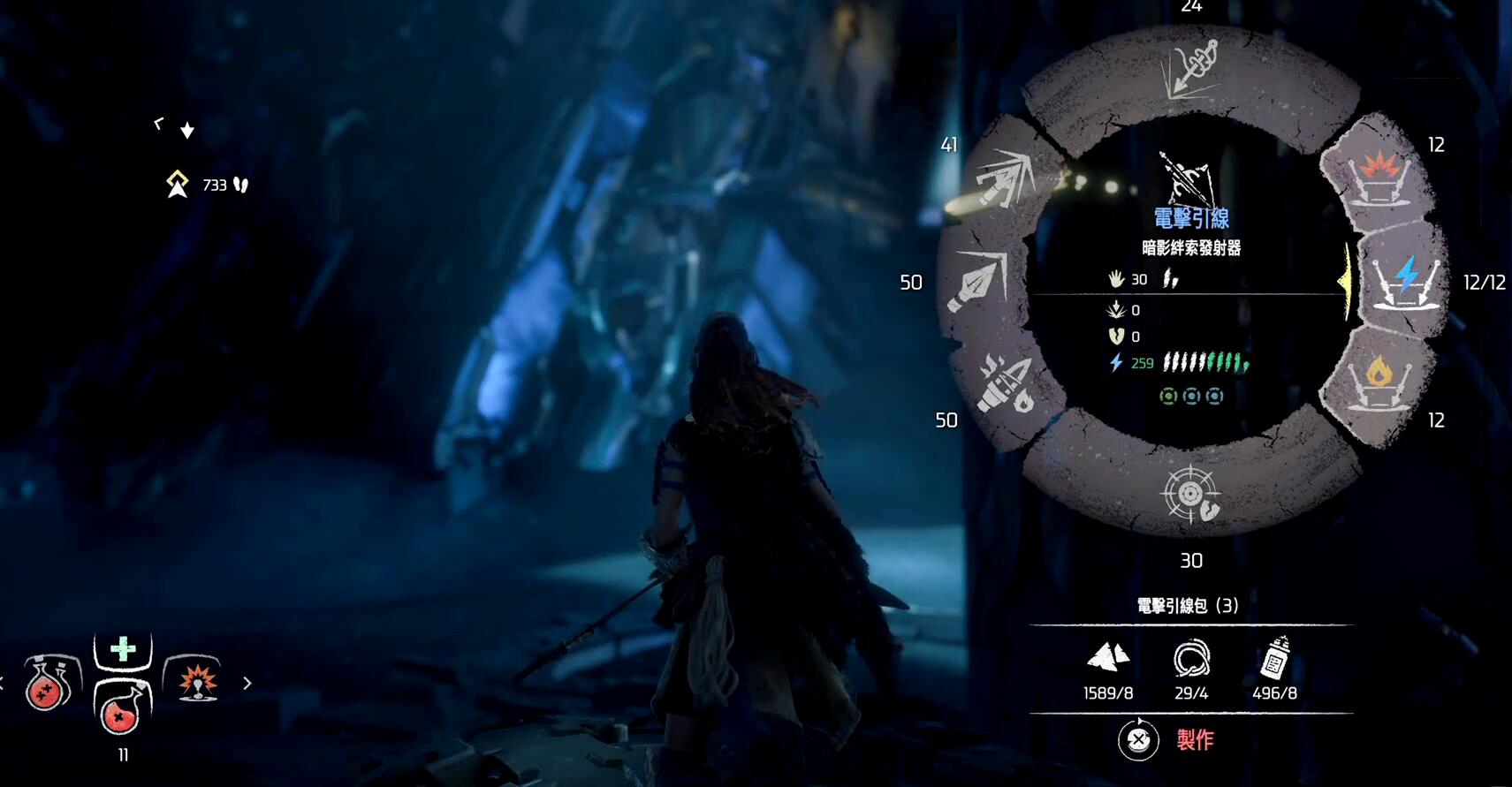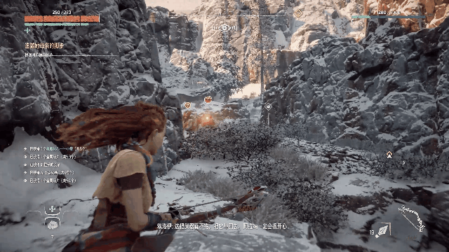 戰鬥系統其實很有趣。玩家擁有一個來自舊人類的小物件,可以獲得類似於刺客信條裏鷹眼感應的能力,可以分析和讀取物品信息,也可以高亮任務和敵人路徑,最重要的是感知敵人弱點部位——一下將怪獵和信條的好玩點都兼併了