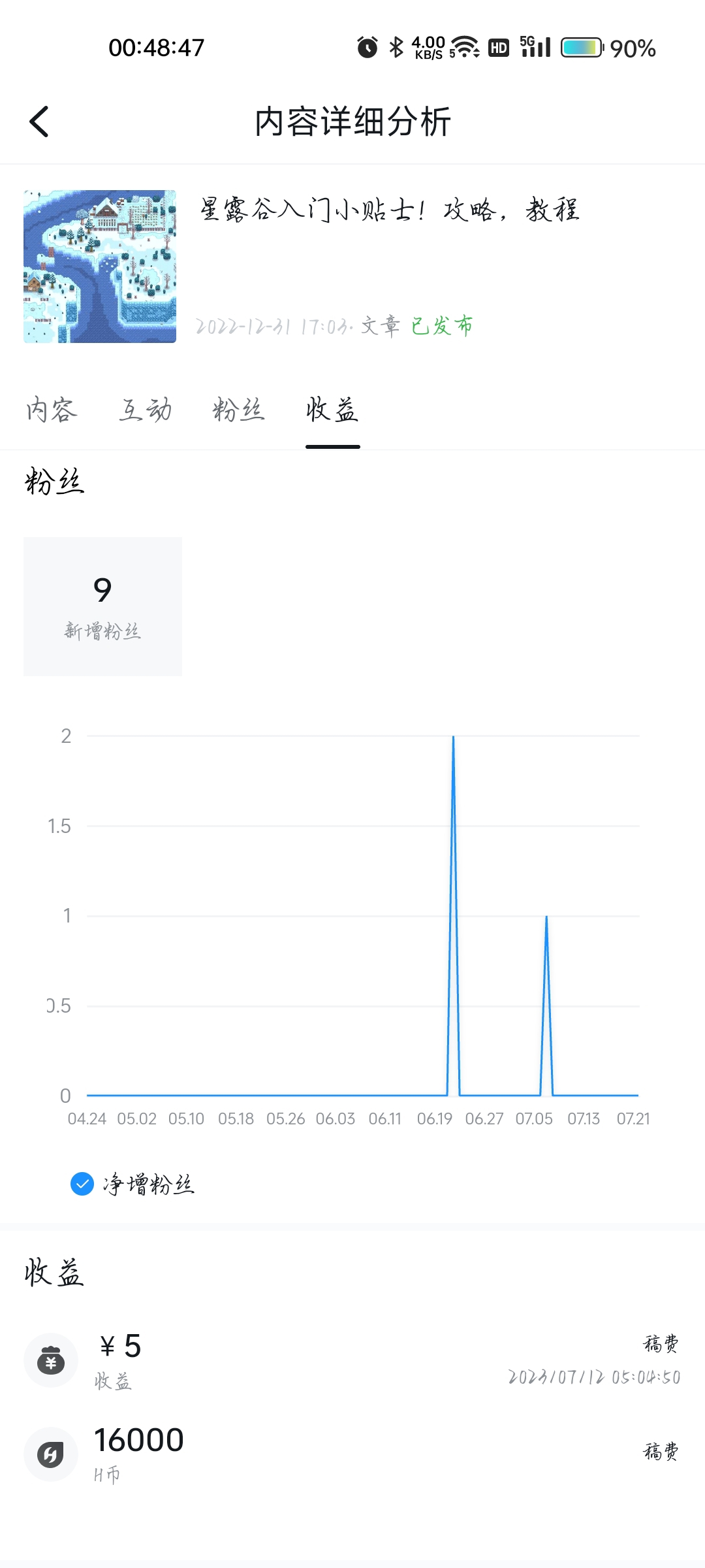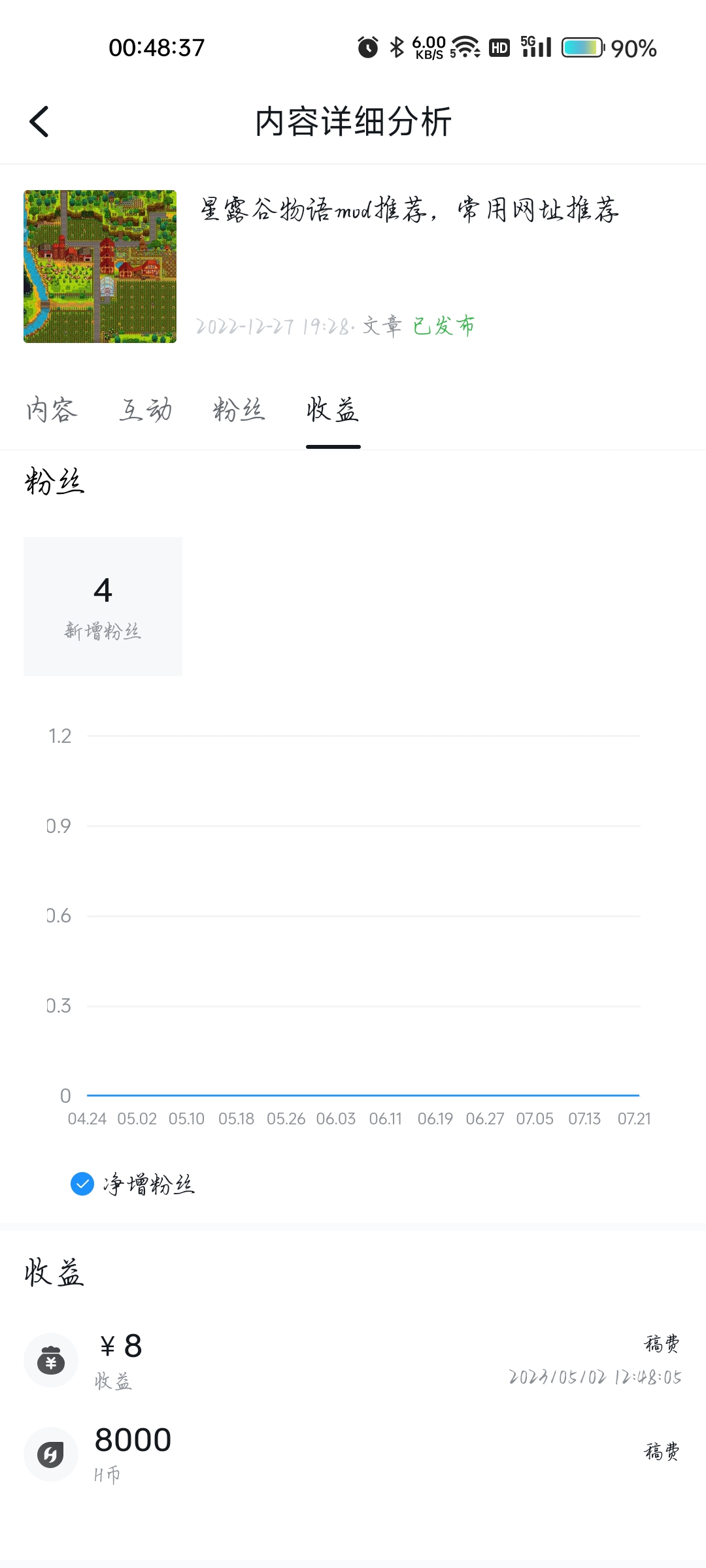最开始大家的账号都是1级作者。一级作者创作收益只有盒币和等级经验。我最开始在小黑盒写了两篇星露谷物语的攻略,收到了24000盒币。之后我创作等级就升到2级了,盒子结算稿费就不给盒币而是给钱了。