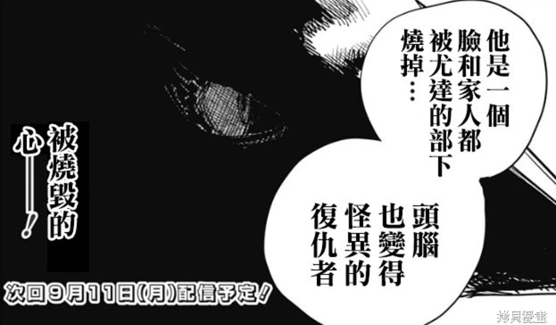 阿格尼抱着賀利田化作焦炭的軀體回到了炎拳教基地,卻發現小村莊早已被參天巨樹所摧毀。