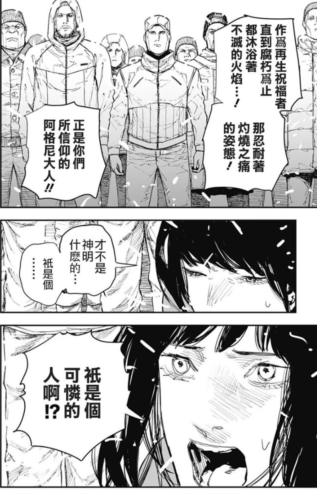 而感覺不到任何疼痛的阿格尼被躲在後方的少年暴徒命中多槍,渾身槍孔的阿格尼嚇走了他,但是阿格尼的再生祝福已經停滯,於是失去痛覺的阿格尼昏死過去。