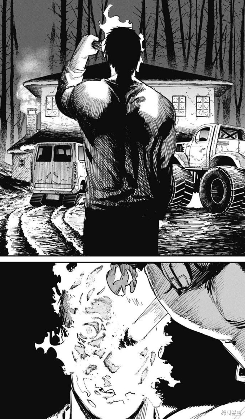 當天夜晚,阿格尼來到那夥暴徒的聚集地,看着燈火通明的房間,阿格尼想起了妹妹的幻影,於是他用火把灼燒自己的臉,阿格尼再一次成爲了炎拳,斷裂的右手也再度長回。