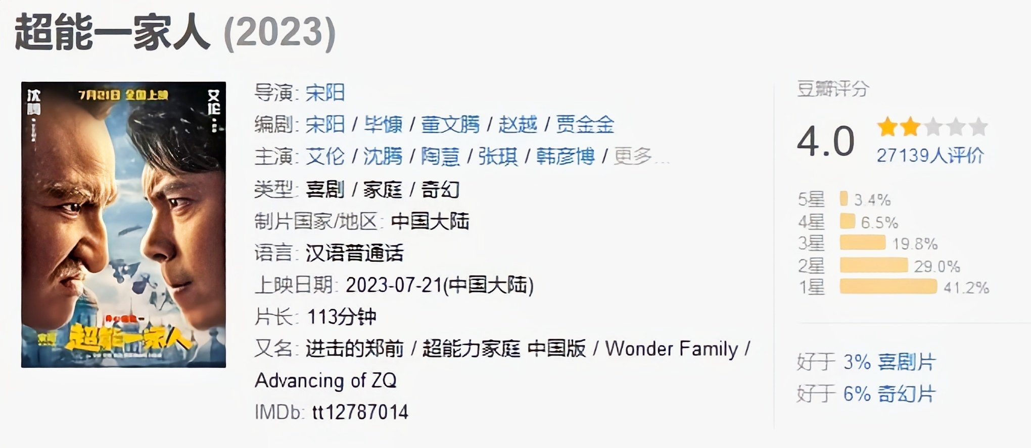 超能一家人是開心麻花的新作品“奇幻喜劇”由宋陽(《羞羞的鐵拳》)執導,艾倫、沈騰、陶慧、張琪、韓彥博、白麗娜主演。