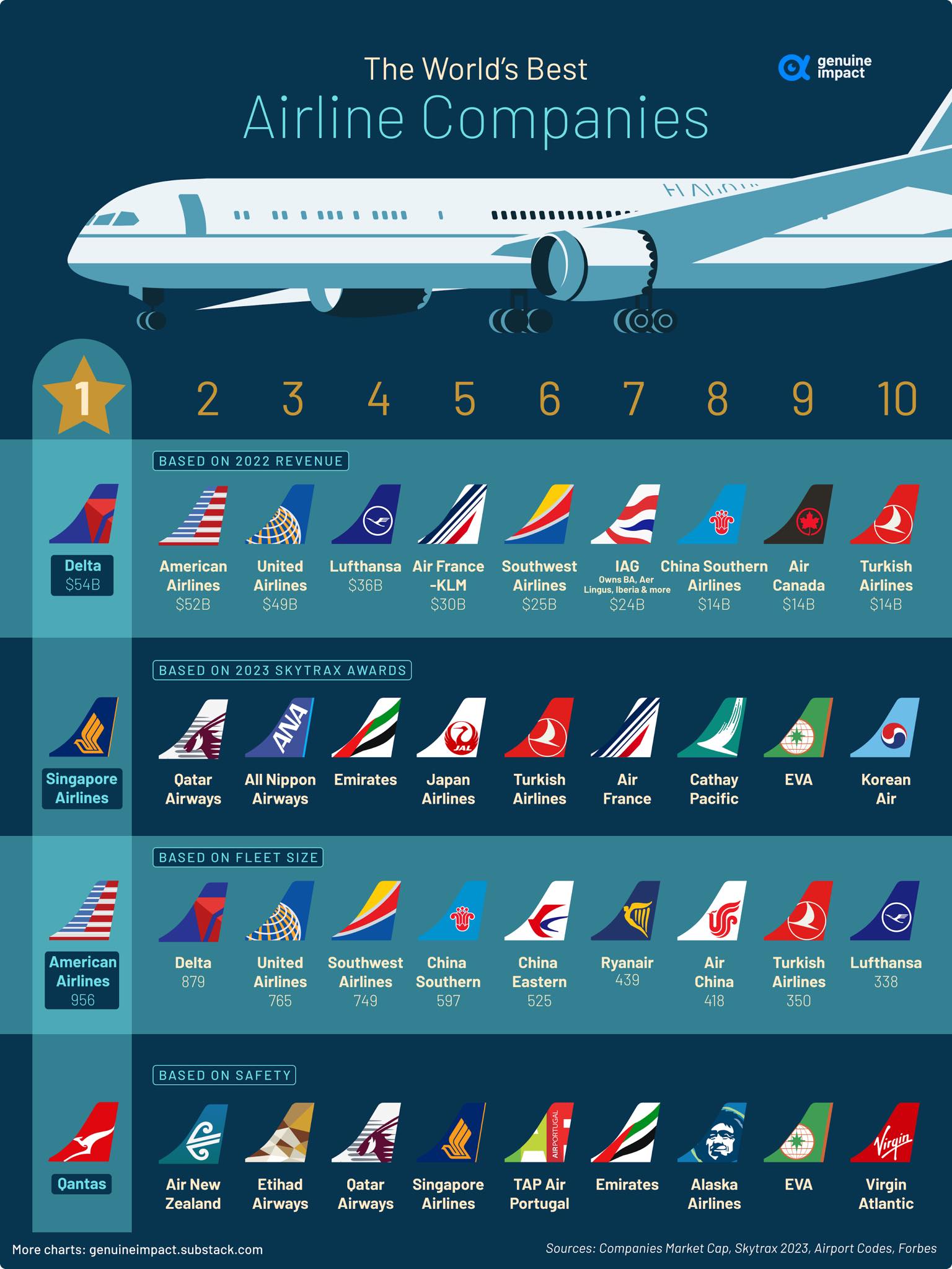 機隊規模來看,美國航空公司是最大的,有956架飛機,其次是達美航空公司,有879架。