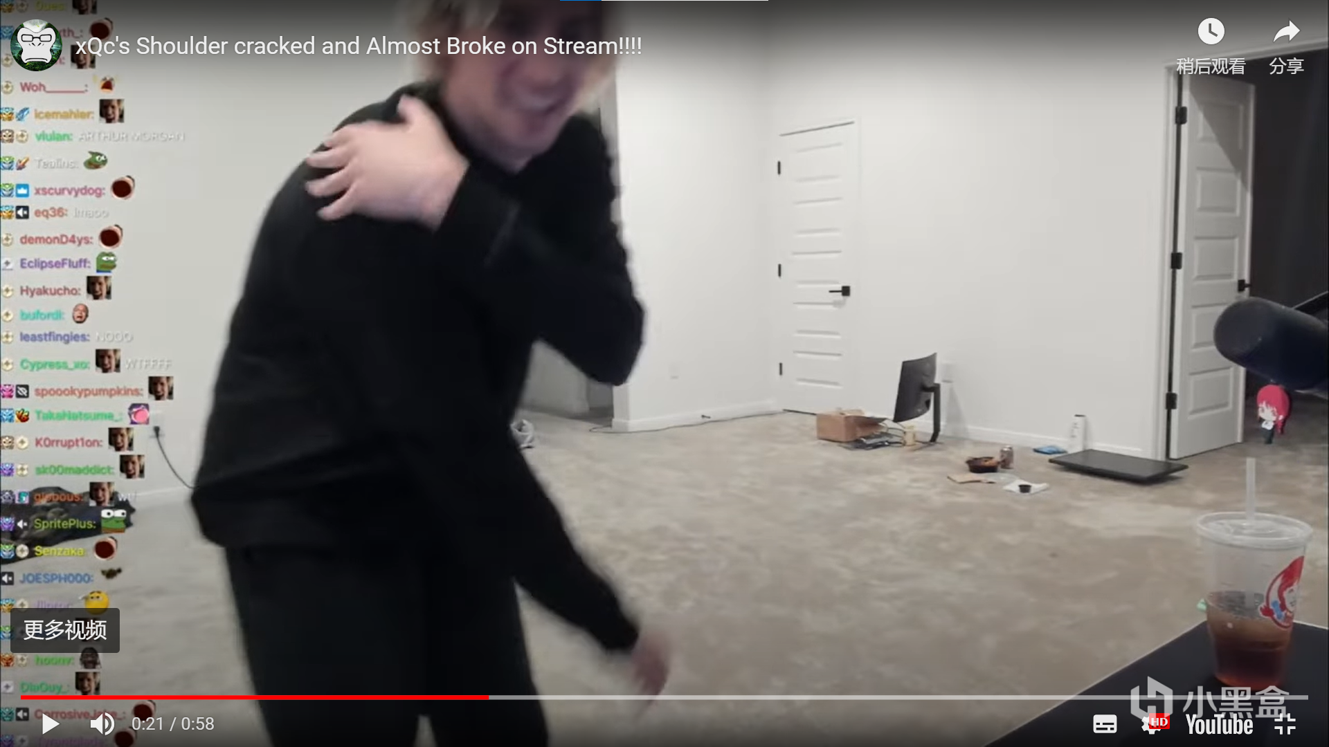 结果就是,xqc开始捂着自己的肩膀叫疼了,并说自己的肩膀好像“出轨”了一样。
