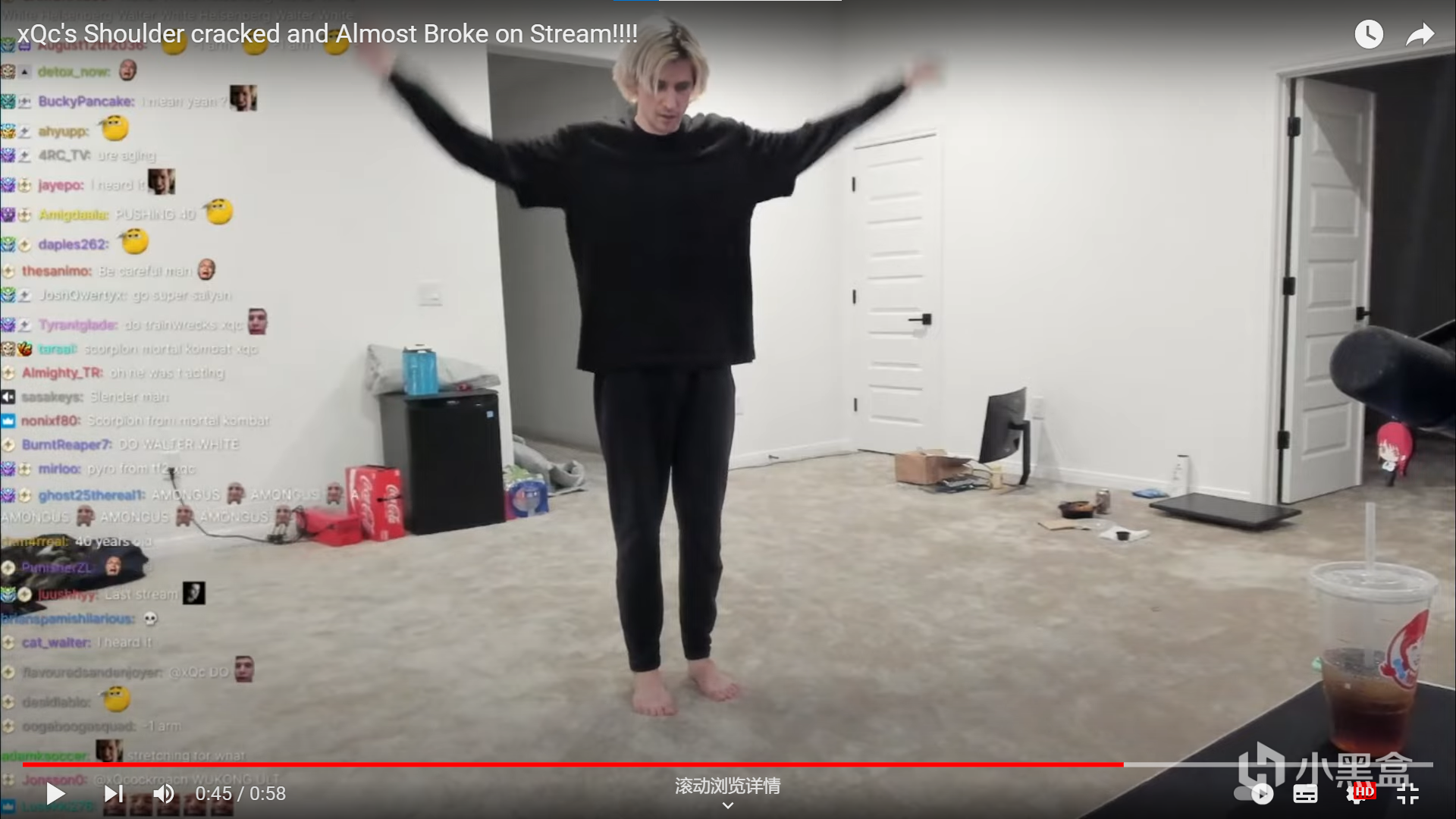 xQc 演示了他的手臂做伸展动作的样子,这使得他的肩膀发出咔哒声。“我的肩膀现在又卡进去了,这应该是就位了,对吧?”