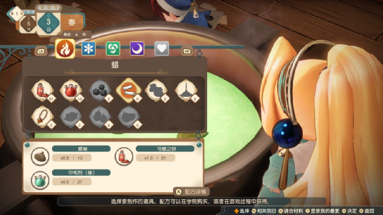 值得一提的是,本作的炼制素材所需数量是向上取整的,比如制作一份蜡的需要0.8个蜂巢,实际就会消耗1个蜂巢,因此不想造成素材浪费可以一次多做几个。