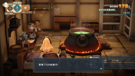 炼金工坊系列的教程一向是巨细无遗,光是可以查看的条目就有好几页,在重制完后更是把饭喂到了嘴里。游戏中以老师发布课题的形式将玩家要做的主线任务标在了界面的右上角。即便你早早的完成了任务后无所事事,每天打开地图总会有一两个场景打上了红色感叹号,这意味着玩家可以去收集传闻,这些传闻会提示在特定的时间和地点可以采集到特定的物品,又或是某个日子将会发生大事,玩家可以根据提示来提前做好相应的准备。